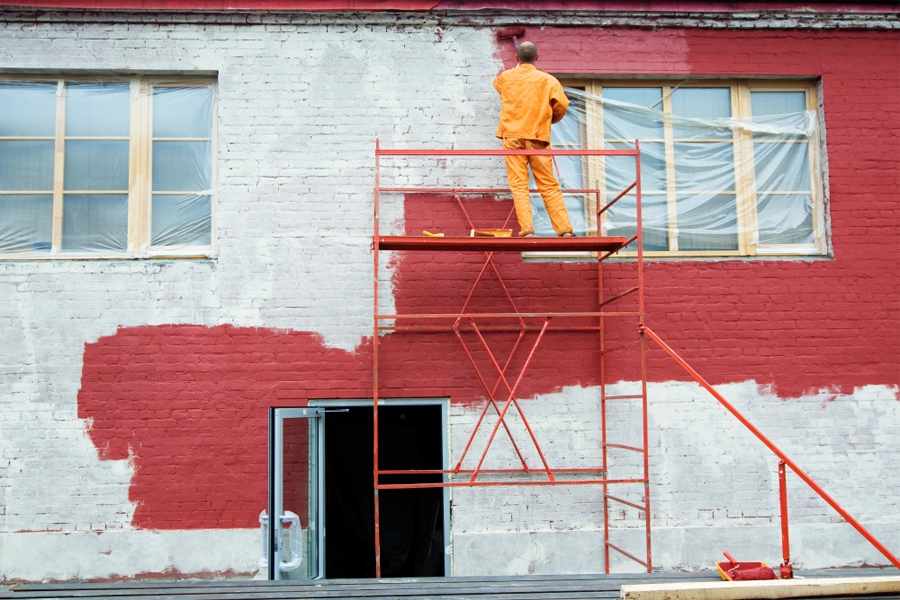 Exterior painting is the process of painting or protecting the exterior facades of a building, such as walls and other exterior structures.